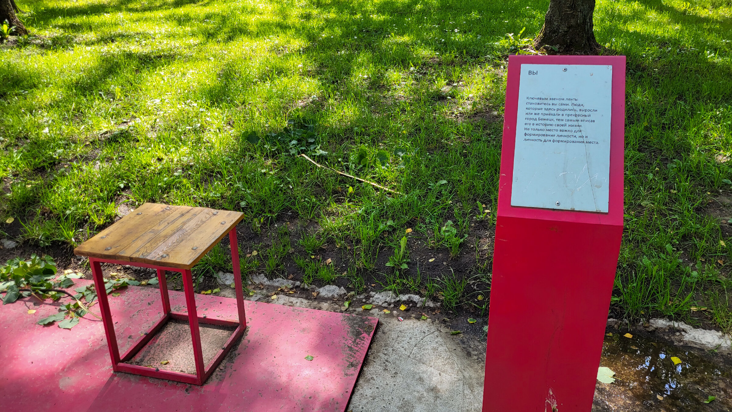 И есть одна деталь, которая особенно запоминается: табурет с табличкой, где говорится, что ключевое звено всей этой истории — это ты сам. Те, кто здесь родился, живёт или просто приехал.
